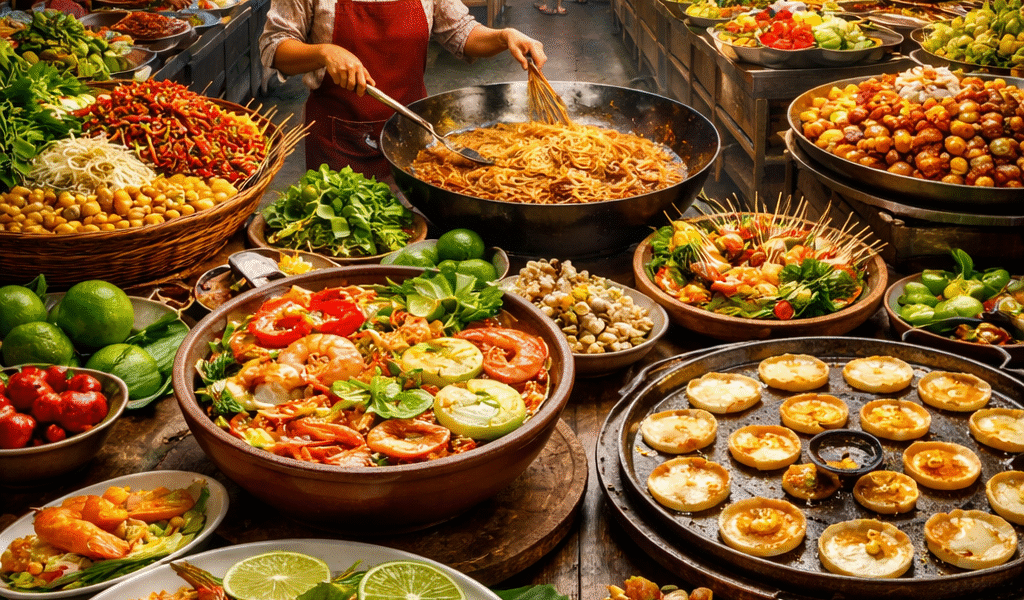 ตลาดดั้งเดิมในประเทศไทยเป็นแหล่งรวมของอาหารข้างทางที่มีรสชาติหลากหลาย ตั้งแต่จานเส้นไปจนถึงขนมหวานและของว่าง ผู้เยี่ยมชมสามารถสัมผัสประสบการณ์ทางอาหารที่เต็มไปด้วยสีสันของเครื่องเทศสดใหม่ และกลิ่นหอมของอาหารที่ปรุงสดในทุกๆ มุมของตลาด